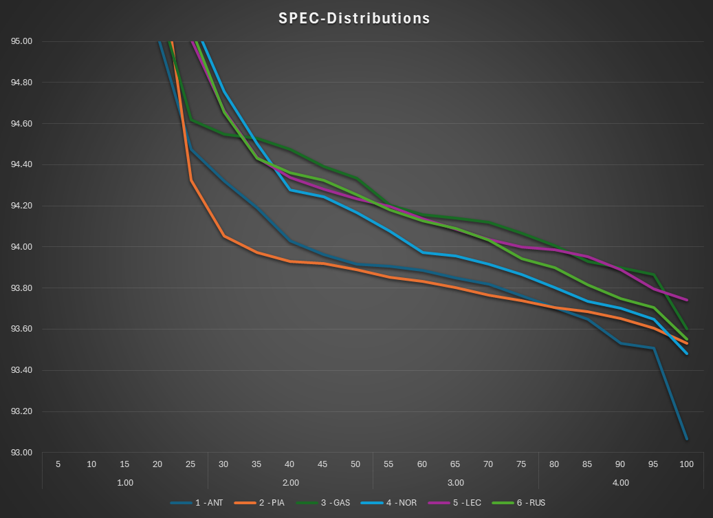 By construction, the SPEC normalization anchors the field — here around the 80th percentile — aligning all drivers at a common reference point.